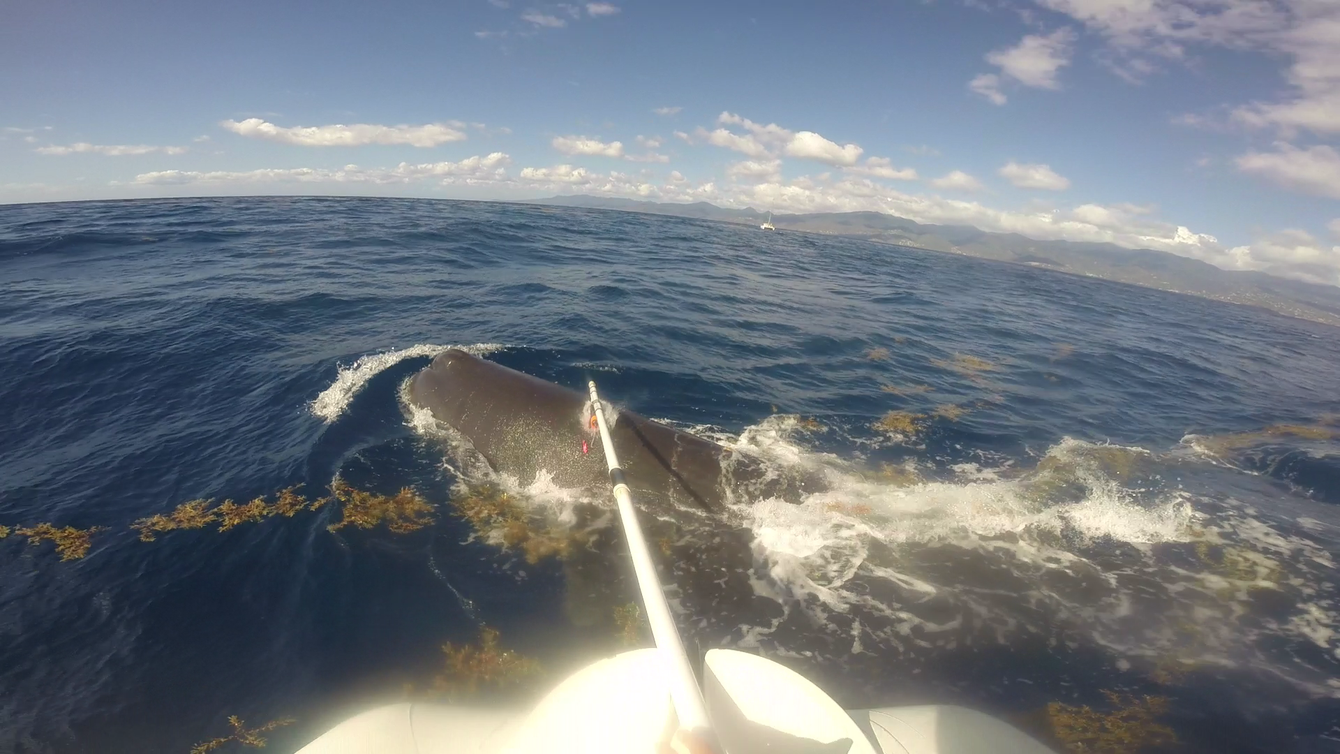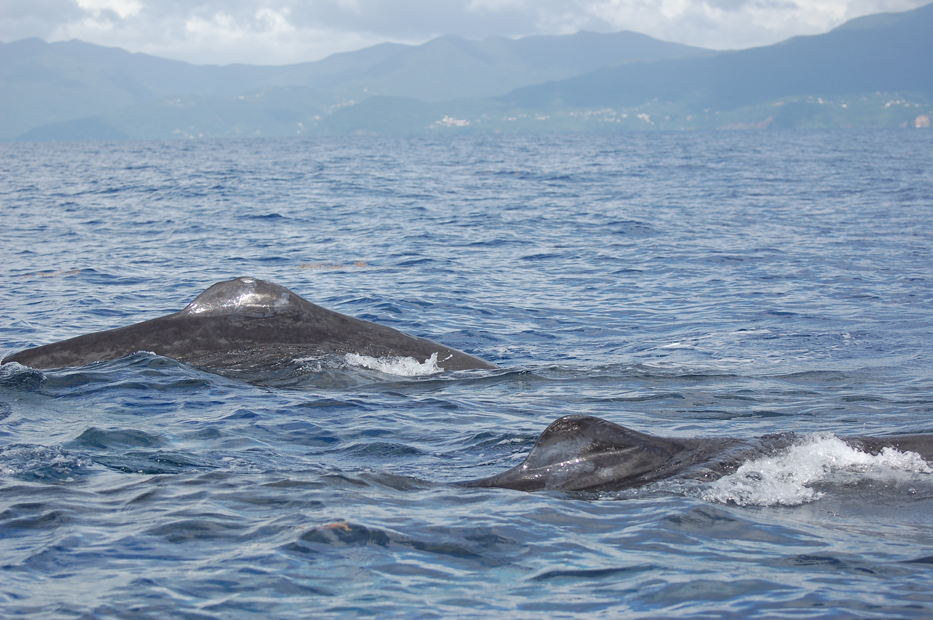 In 2014, the lab initiated a study of sperm whales and other cetaceans offshore of the west coast of Guadeloupe in the Carribean. In collaboration with SPAW-RAC, and funded by the Total Foundation (France), we are using animal-borne video cameras developed by Exeye Ltd and biopsy sampling to study the behavior of deep-diving species. From the biopsy samples, we can measure contaminant loads, conduct genetic s